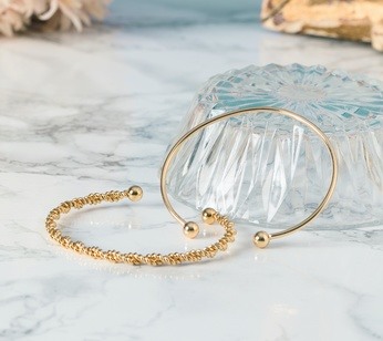 シンプルなデザインなので、他のアクセサリーとの相性も抜群。また、イベントが増えるこれからのシーズンに身に着けると、ちらりと覗くゴールドの輝きと揺れるバングルがちょっとした動作に優雅さを与えてくれること間違いなし !