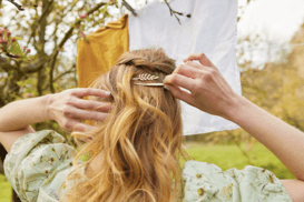髪留めとしても、お団子ヘアなどのヘアアレンジのアクセントとしても使うことができ、こなれ感のあるヘアスタイルが完成 !